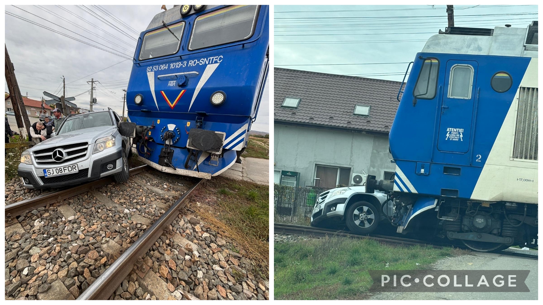 La fața locului, polițiștii au stabilit că un tren care circula pe ruta Șărmășag – Zalău a surprins și acroșat un autoturism.