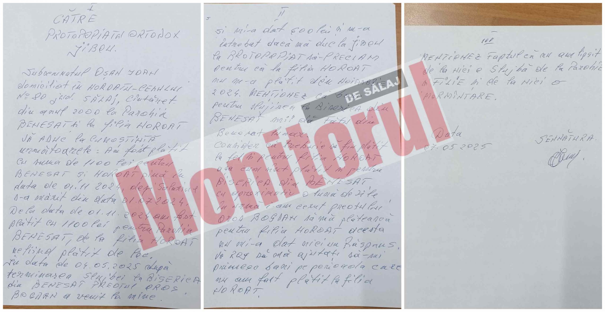 După discuțiile purtate la Episcopia Sălajului, s-a hotărât ca preotul Oros Bogdan să-i plătească cântărețului un salar lunar de 600 de lei pentru Filia Horoatu Cehului, fără a fi menționat să-i achite salariile restante din octombrie 2024.