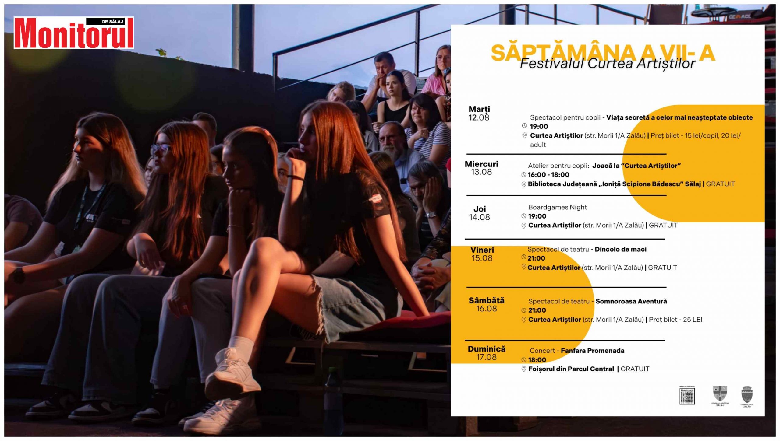 Festivalul „Curtea Artiștilor” dă startul unei noi săptămâni pline de evenimente. Copiii sunt așteptați la diverse activități, precum spectacole și ateliere educative care le oferă oportunitatea de a-și petrece timpul liber într-un spațiu creativ și prietenos. De asemenea, zilele de weekend vin cu două spectacole de teatru de neuitat: „Dincolo de maci” și „Somnoroasa Aventură”, dar și cu un concert susținut de Fanfara Promenada. Nu în ultimul rând, serile de jocuri continuă și în această săptămâna, într-un cadru dinamic, unde vă așteptăm să petreceți momente memorabile alături de prieteni.