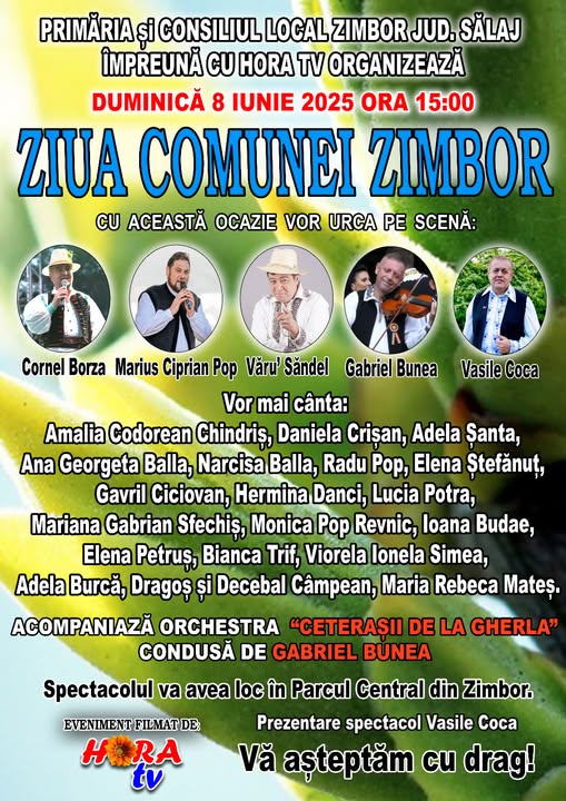 Primăria și Consiliul Local Zimbor, prin grija domnului primar Gabriel Mureșan, organizează duminică, 8 iunie, Ziua Comunei Zimbor.